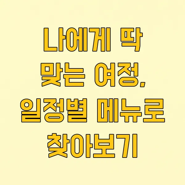 나에게 딱 맞는 여정, 일정별 메뉴로 찾아보기